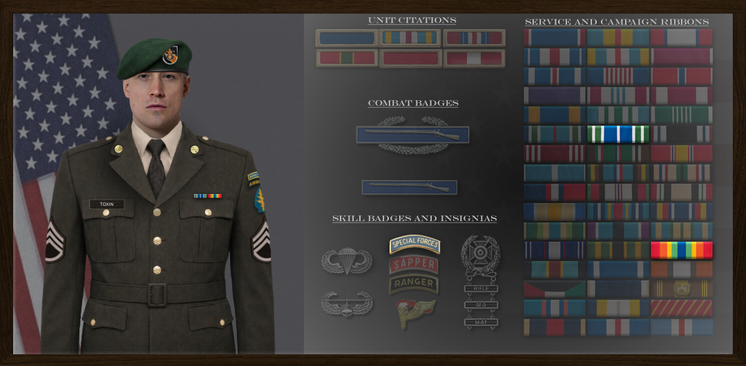 The Secretary of the Army has reposed special trust and confidence in your patriotism, valor, fidelity and professional excellence. In view of these qualities, your demonstrated leadership potential, and dedicated service to the United States Army and the 5th Special Forces Group, Xavier Toxin is hereby awarded the Army Service Ribbon Awarded : Mar 17, 2026 Signed: Lieutenant Colonel Jay Lewis |