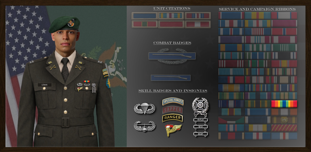 The Secretary of the Army has reposed special trust and confidence in your patriotism, valor, fidelity and professional excellence. In view of these qualities, your demonstrated leadership potential, and dedicated service to the United States Army and the 5th Special Forces Group, Jay Lewis is hereby awarded the Army Service Ribbon Awarded : Feb 13, 2026 Signed: Captain Jay Lewis |