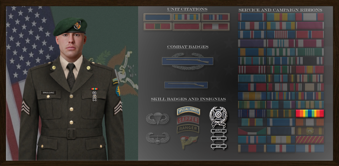 The Secretary of the Army has reposed special trust and confidence in your patriotism, valor, fidelity and professional excellence. In view of these qualities, your demonstrated leadership potential, and dedicated service to the United States Army and the 5th Special Forces Group, Bradley Spaulding is hereby awarded the Army Service Ribbon Awarded : Feb 13, 2026 Signed: Captain Jay Lewis |